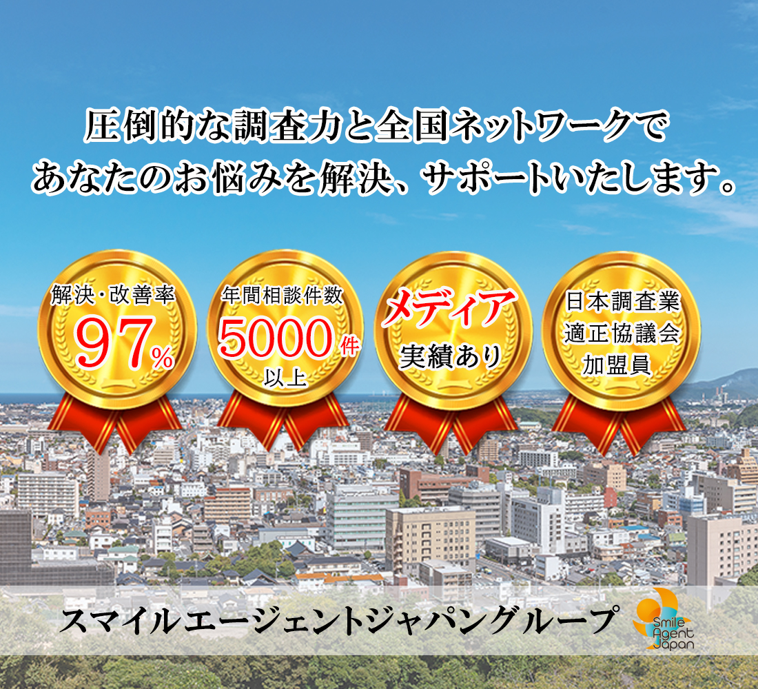 総合探偵社スマイルエージェント掛川は、掛川市全域で不倫調査、浮気調査、素行調査、結婚調査、盗聴器発見調査、盗撮器発見調査、等の各種調査を行っております。